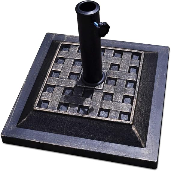 A weighted parasol base is pretty much an essential extra that you'll need to purchase when you buy a patio umbrella if you like to switch your table and chairs to different spots around your garden or patio, you need a parasol base that's not going to put your back out every time you attempt to move it.