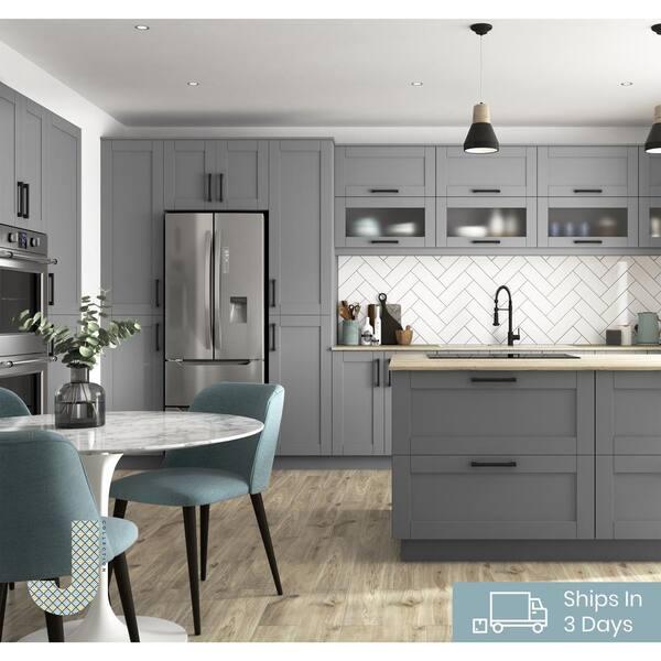 An average kitchen 14 to 18 cabinets can be complete in as quick as two weeks. Simplihome acadian collection medium storage unit axreg007. Gray ready to assemble kitchen cabinets kitchen cabinets the home depot. We, at gec cabinet depot can help you live your kitchen dreams with our exquisite kitchen renovation ideas and excellent variety of kitchen cabinetry. Hampton bay shaker dove gray stock assembled base kitchen cabinet (9 in.